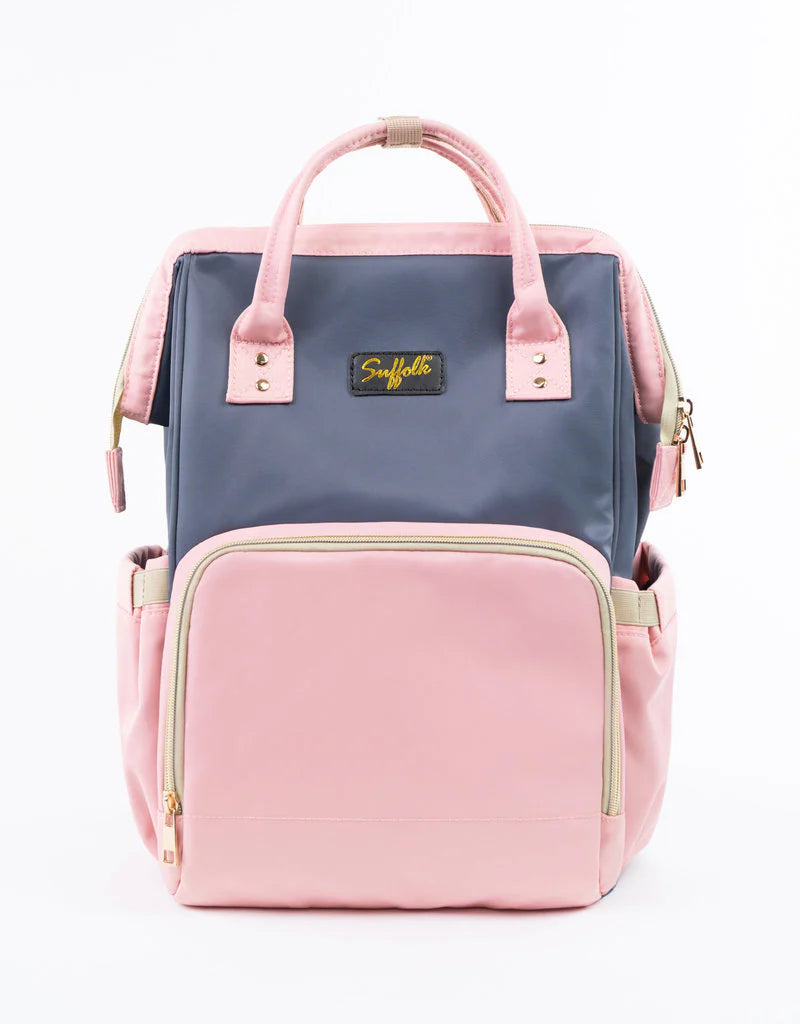The only bag a dancer needs! This bag has handles and backpack straps. On the outside of the bag, the front features a large, zippered compartment that contains an insulated snack pocket; while the back features a zippered cell phone pocket; and a rear zipper that has access to the main compartment. Inside the bag, there are 6 individual compartments perfect for dance shoes. Inside there are also two zippered compartments, one with water-proof lining. The bag is 16 inches tall, 10 inches wide, and 9 inches deep.
