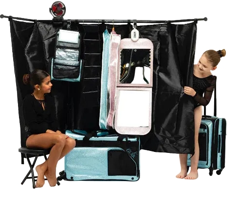 We were not able to find one that fully met our needs, so we decided to design a new, US patented model, called CHANGING STATION™, the dance duffel by Glam'r Gear ! It not only has a hanging rack that doubles as a wardrobe, and all the functions above, but it also has MORE!