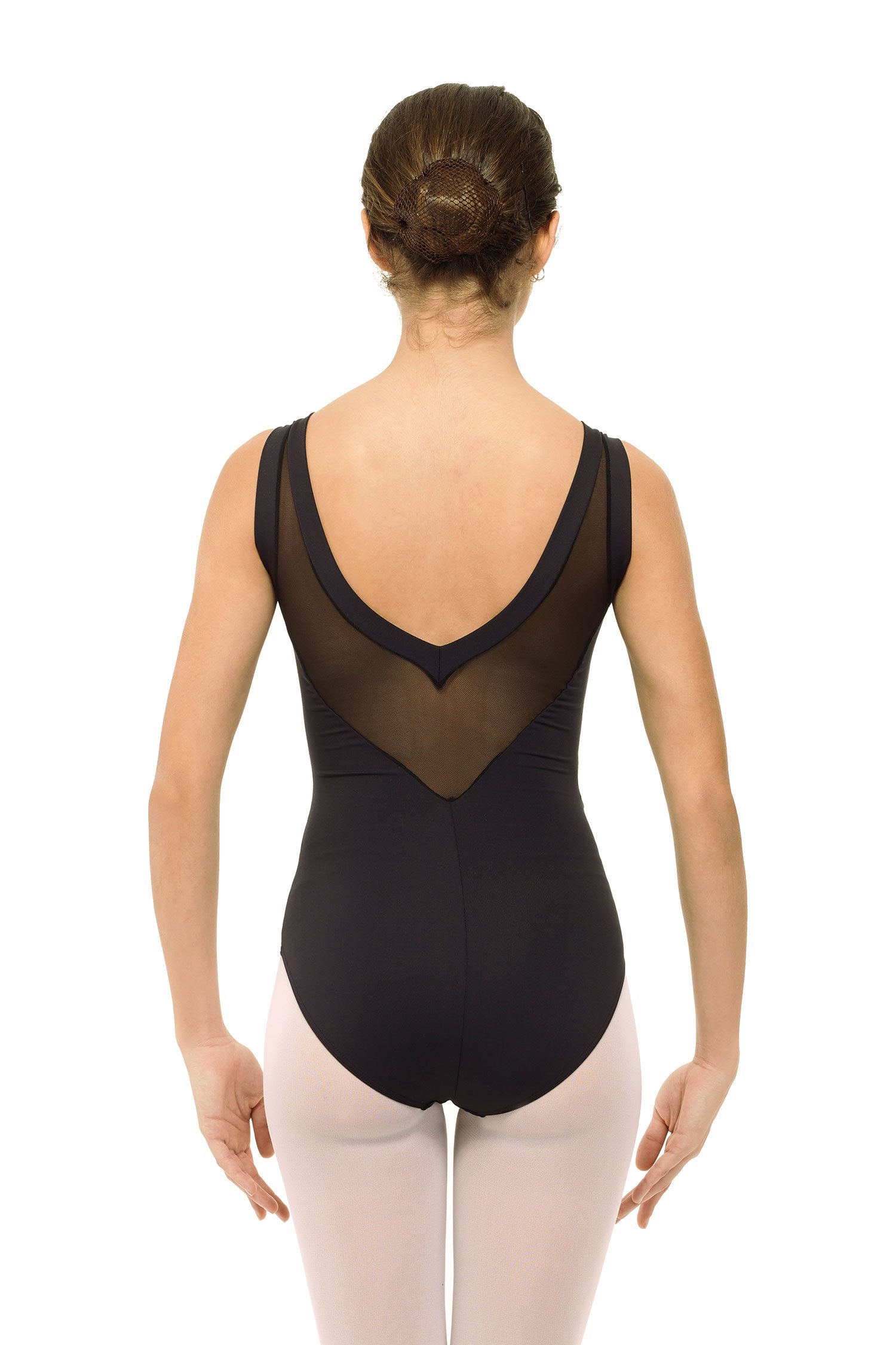 Tank Meryl® Leotard Mesh V-back Intermezzo ballet dance. Strap dance body, stretch mesh upper bodice and plunge V-back. Full front lining. Classic and comfortable leotard for all dancers. Full front lining. A versatile and essential leotard for all ballerinas.