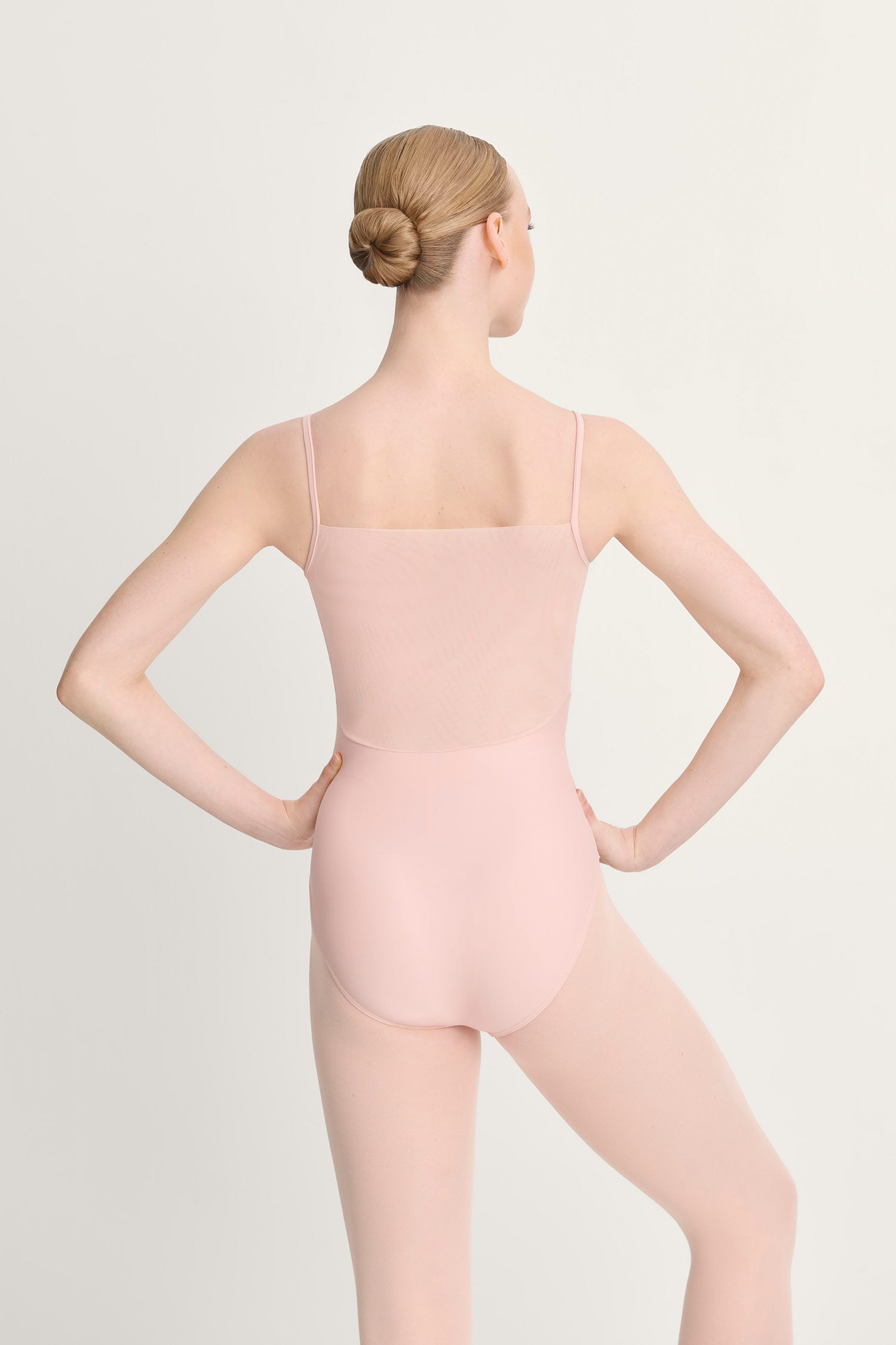 Camisole leotard with a waist seam that enhances the silhouette. Double layer of matching tulle on the front and back. Soft-touch front lining.